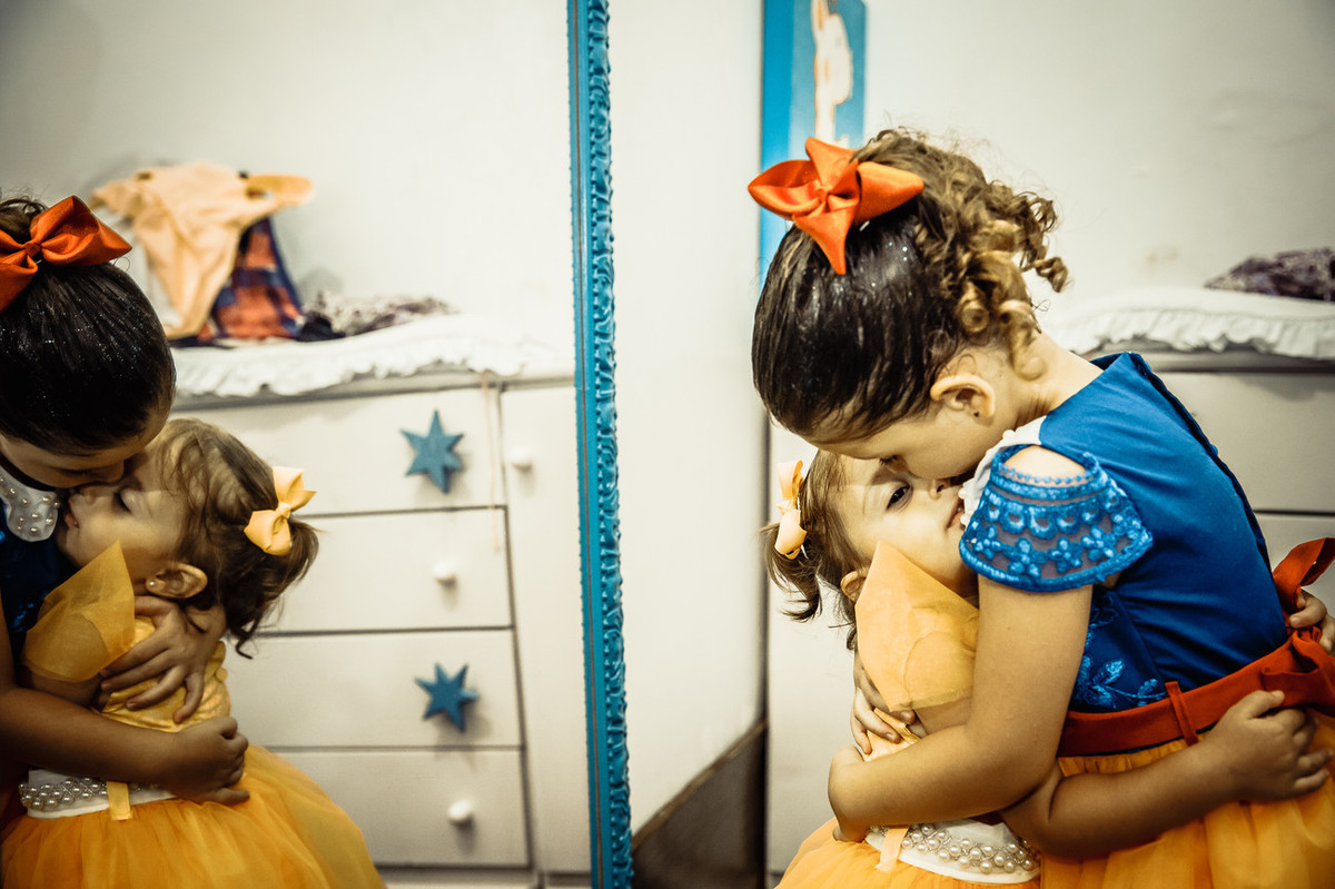 Juju só dorme com o Papai. Enquanto isso Lu ainda mama leite materno e só dorme com a mamãe.
