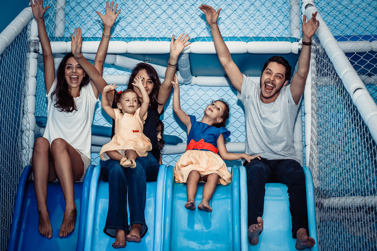 Juju ama andar de Patinete, e Lu prefere as bonecas... e as duas amam um balanço.