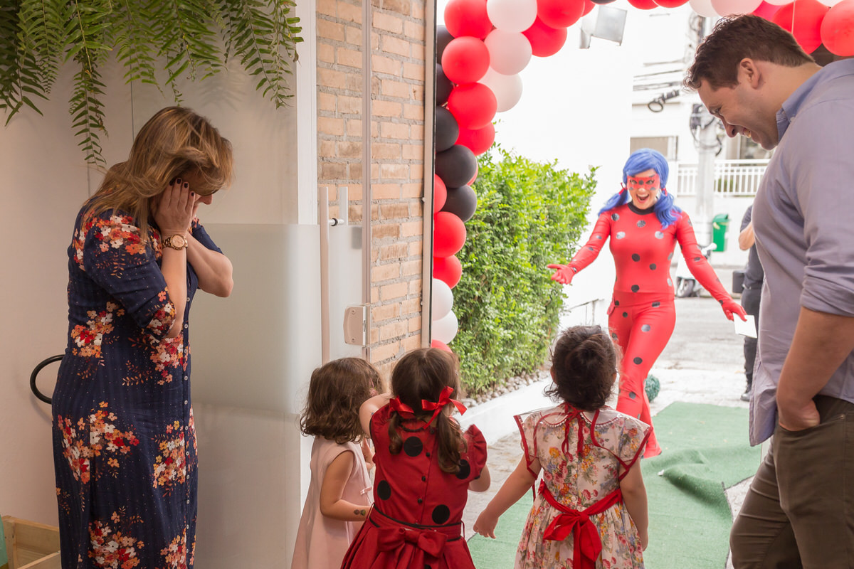 E os pais para surpreende-la ainda mais, convidaram a própria Lady Bug para abrilhantar a festa e surpreender a aniversáriante.