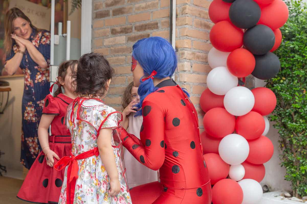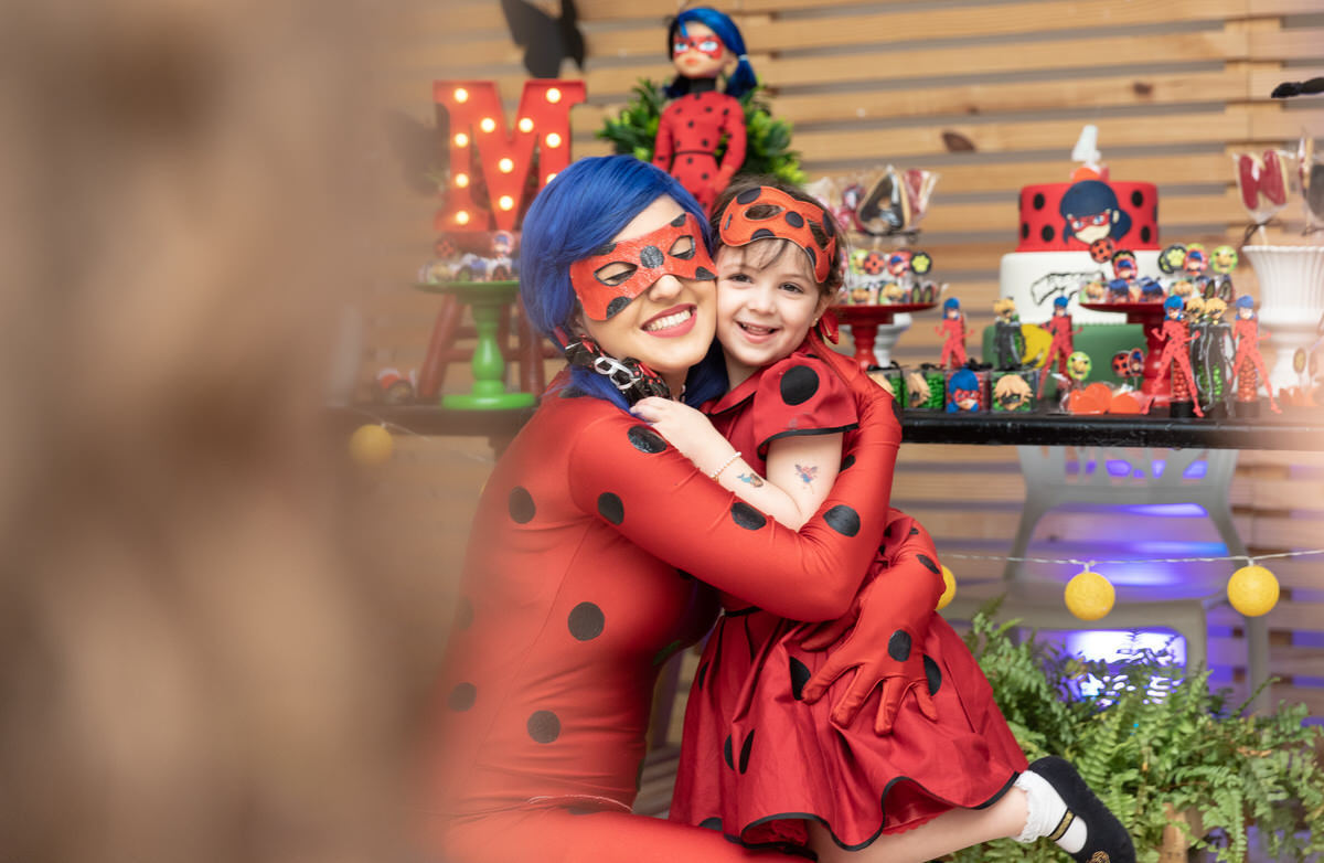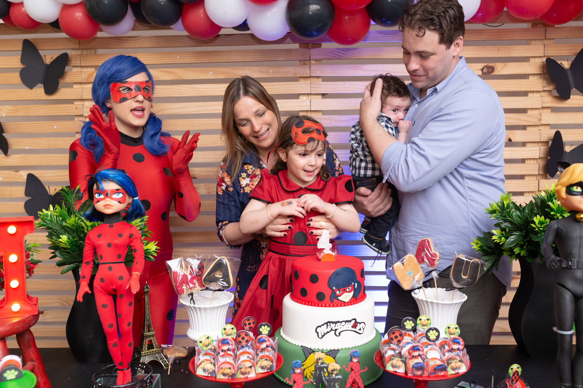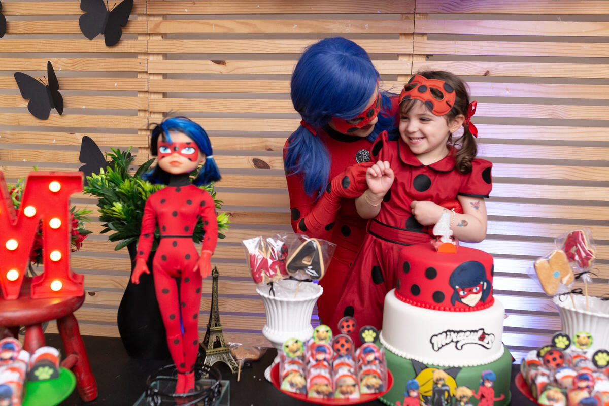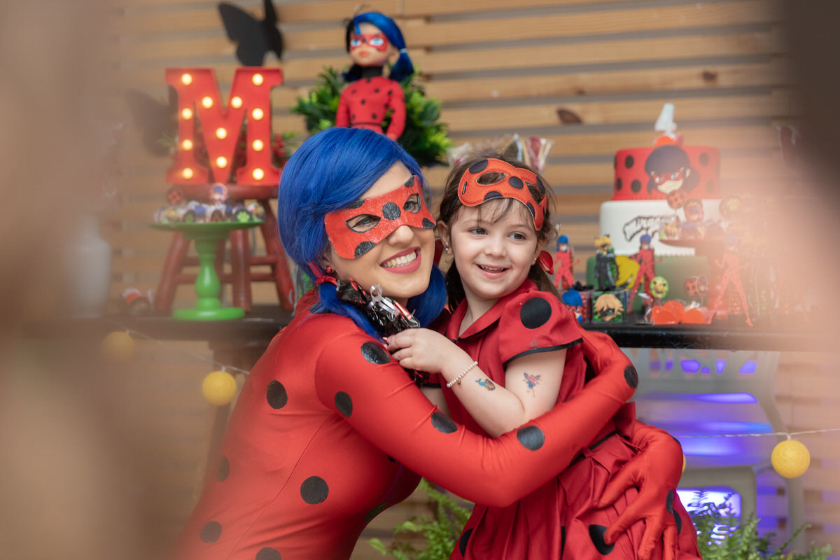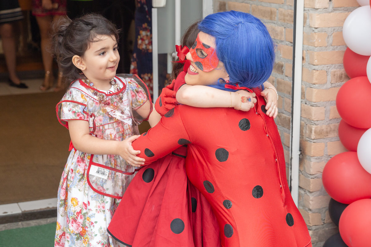 E os pais para surpreende-la ainda mais, convidaram a própria Lady Bug para abrilhantar a festa e surpreender a aniversáriante.
