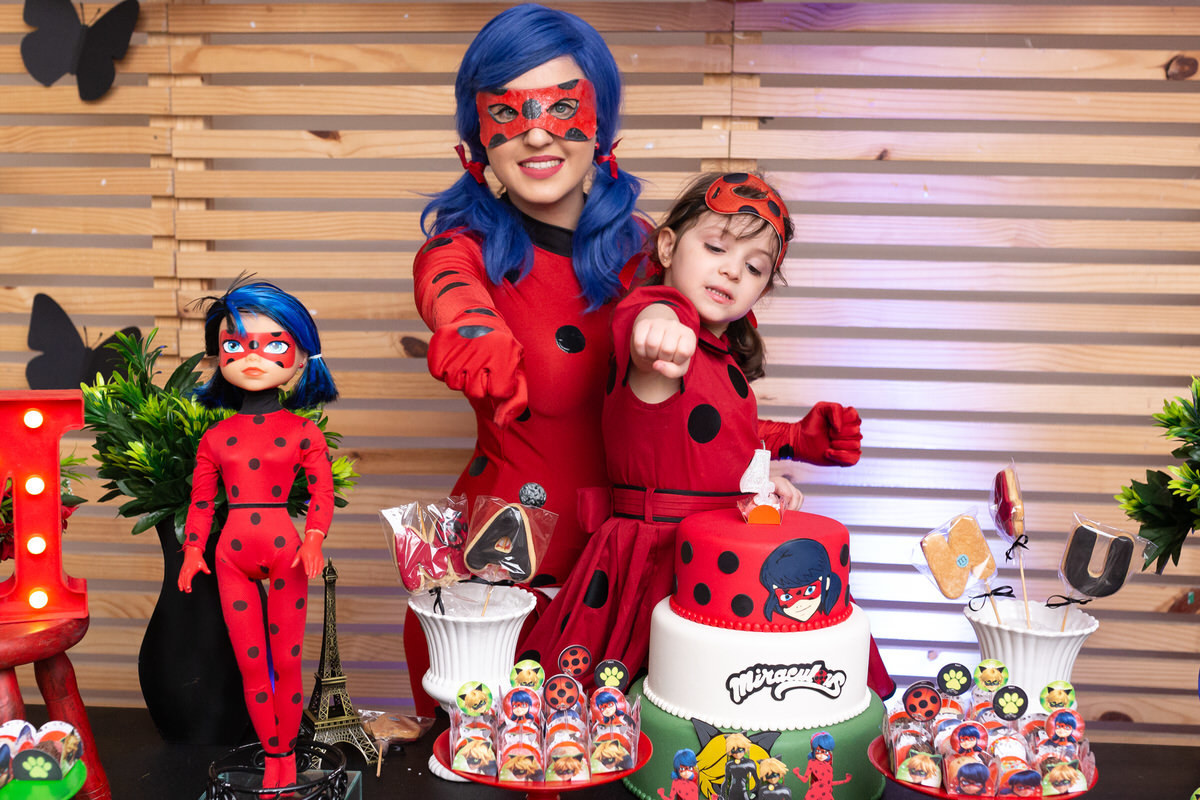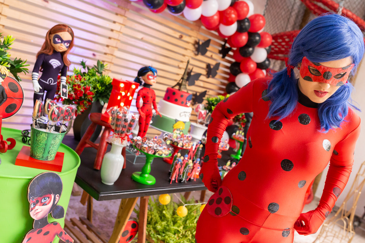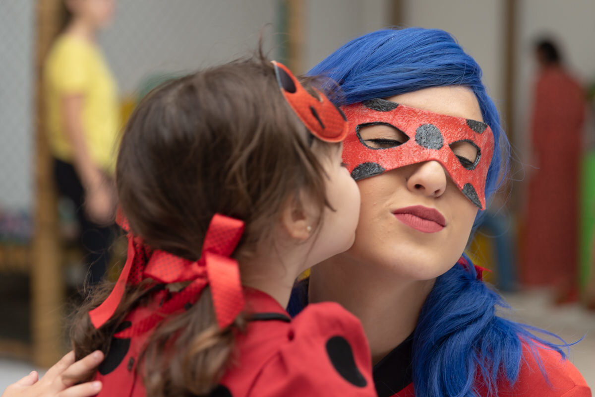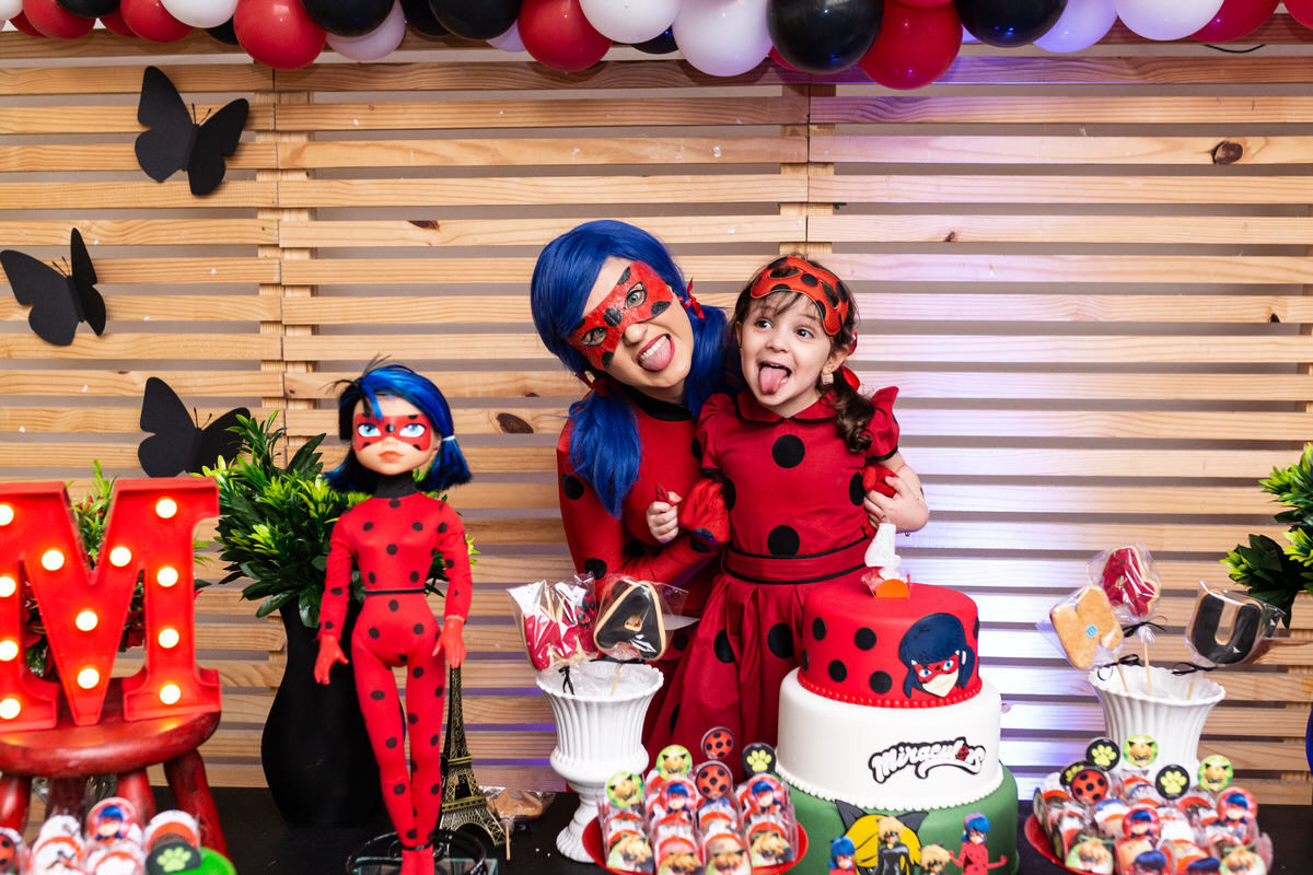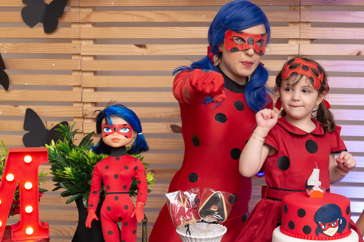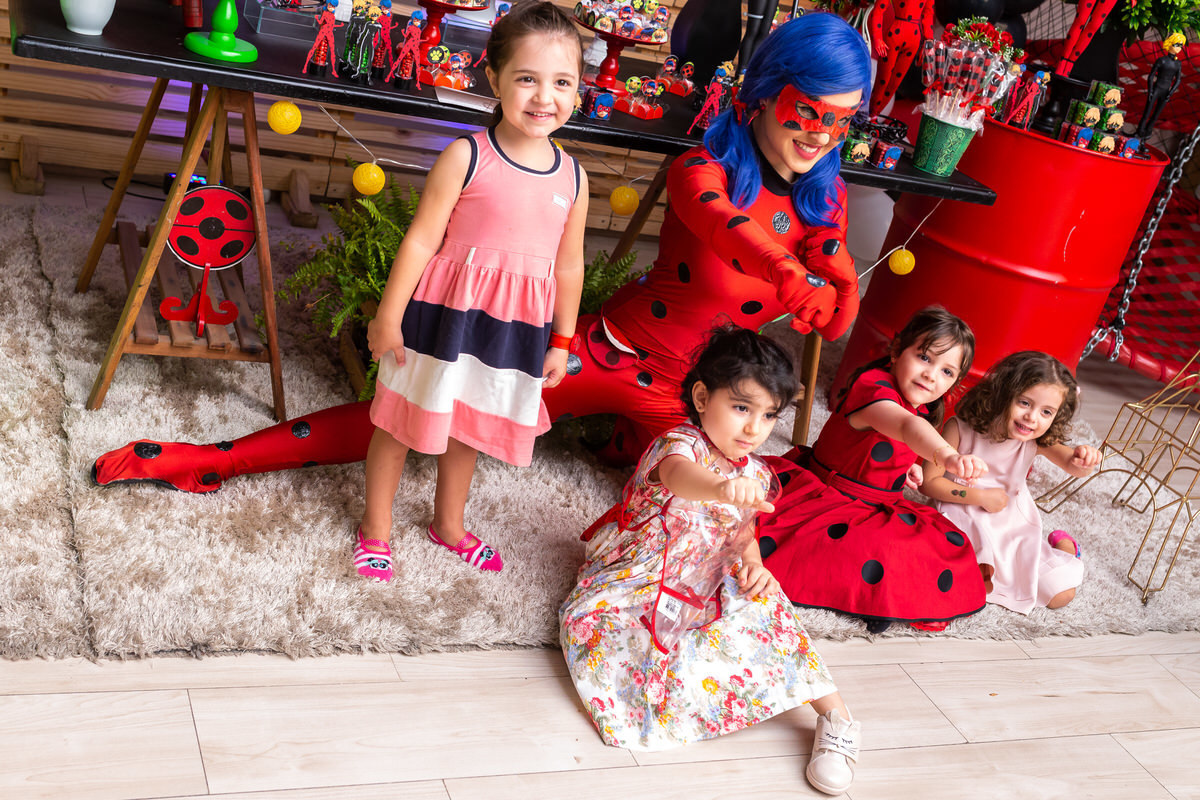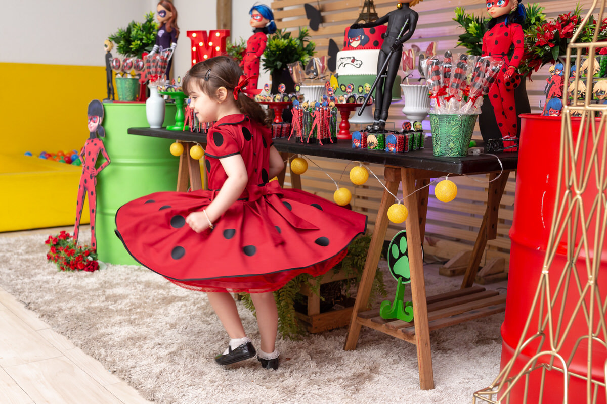 E os pais para surpreende-la ainda mais, convidaram a própria Lady Bug para abrilhantar a festa e surpreender a aniversáriante.