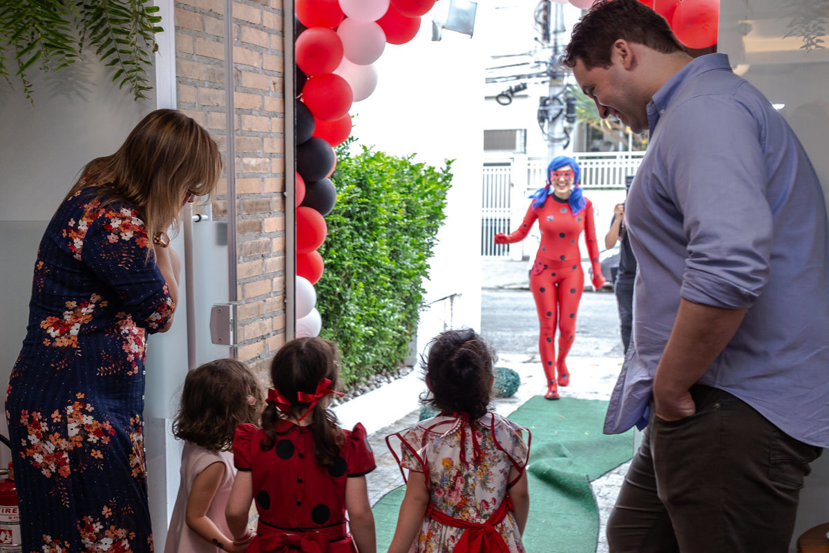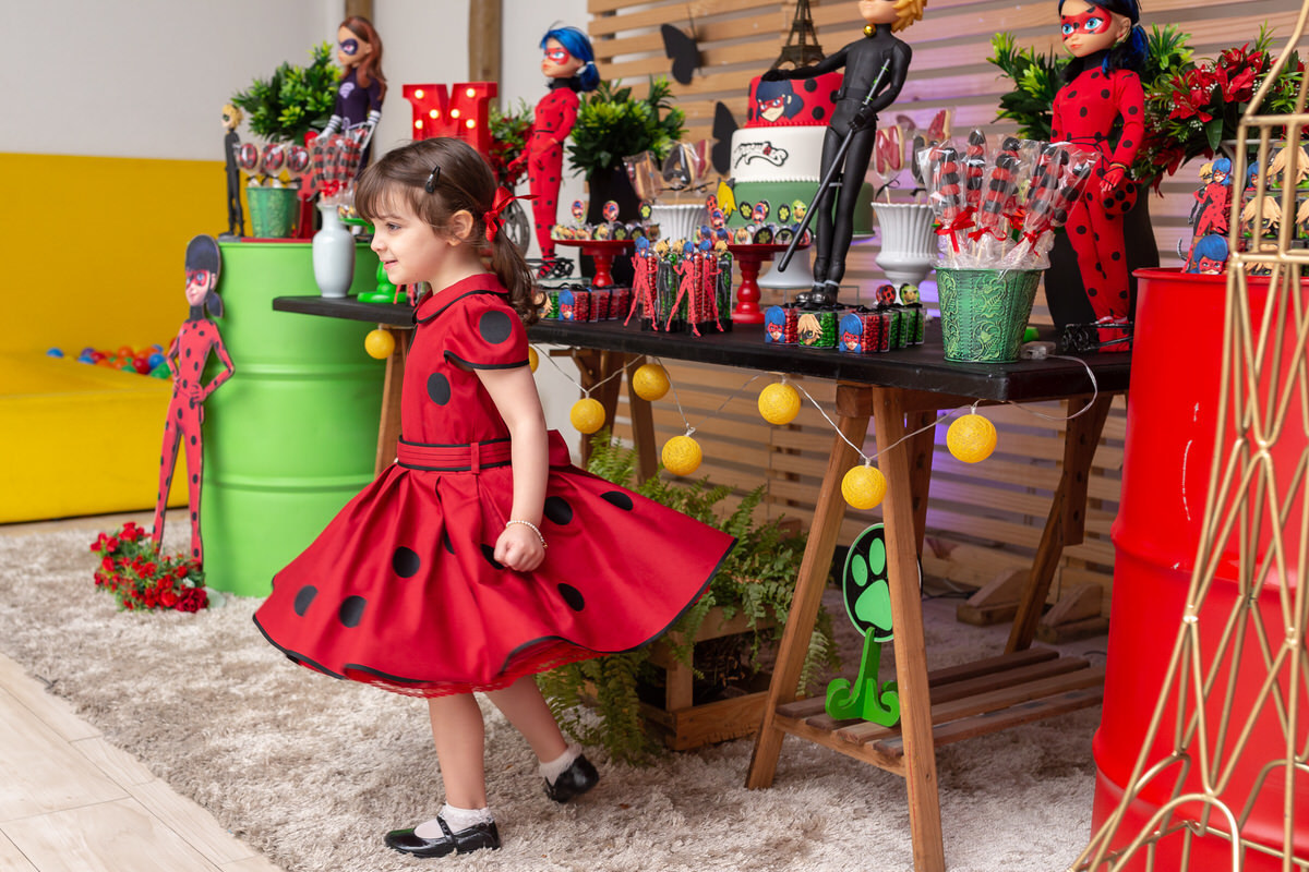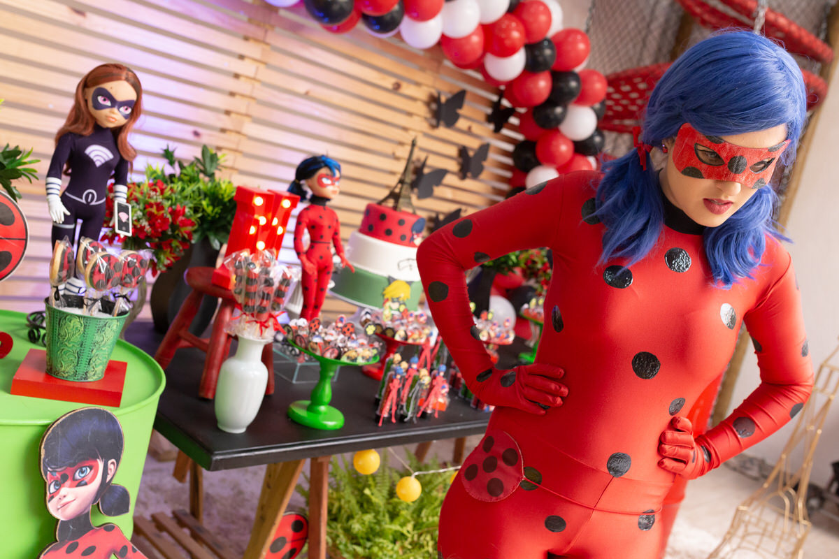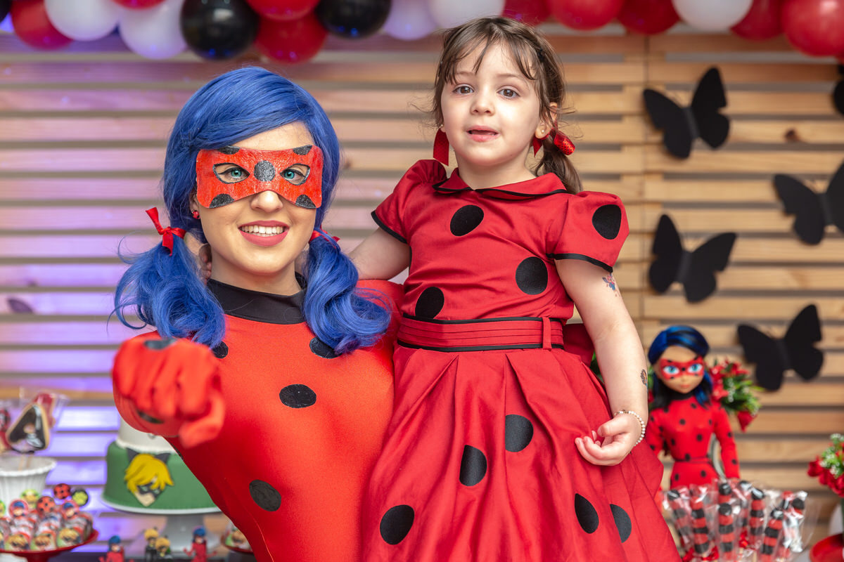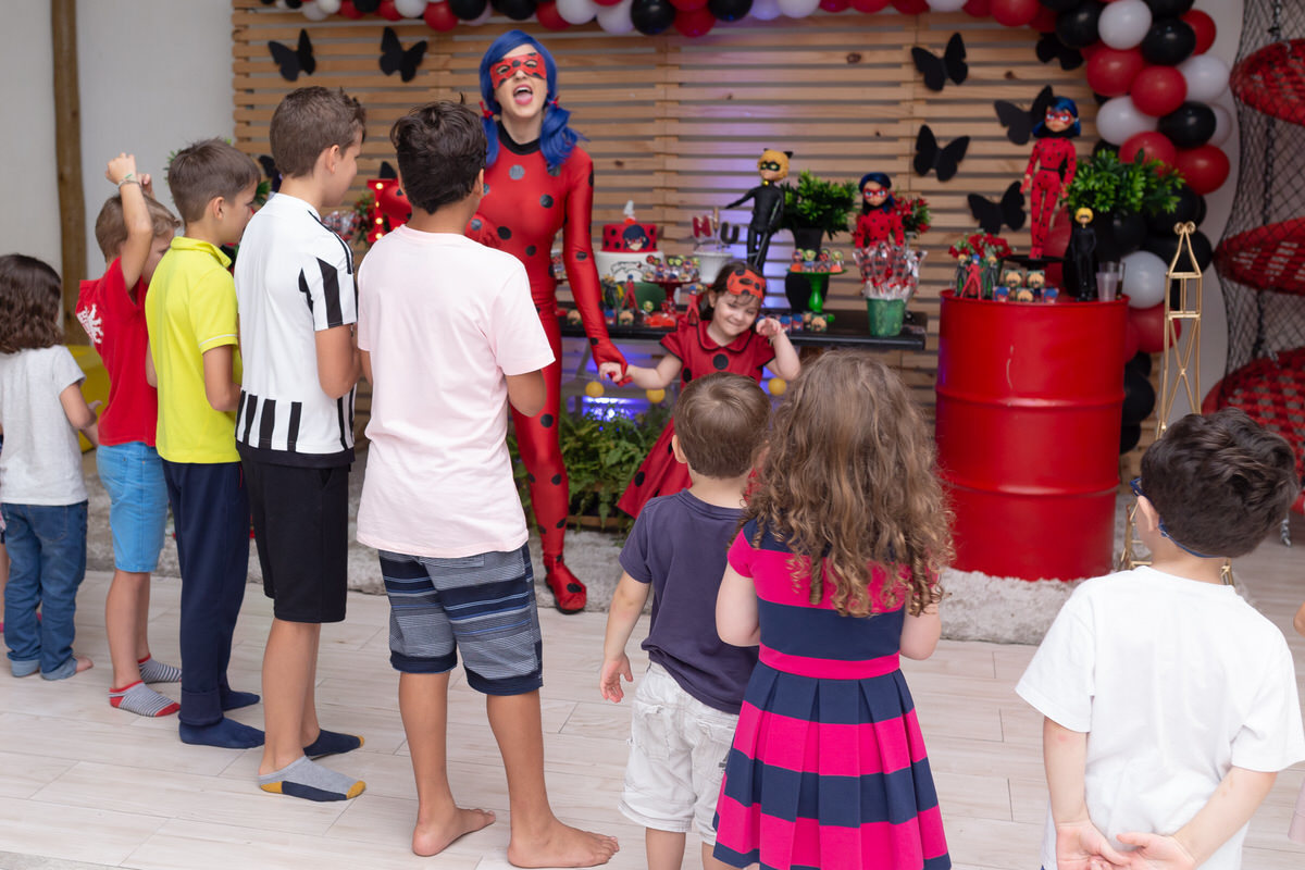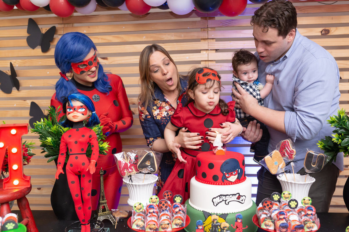 E os pais para surpreende-la ainda mais, convidaram a própria Lady Bug para abrilhantar a festa e surpreender a aniversáriante.