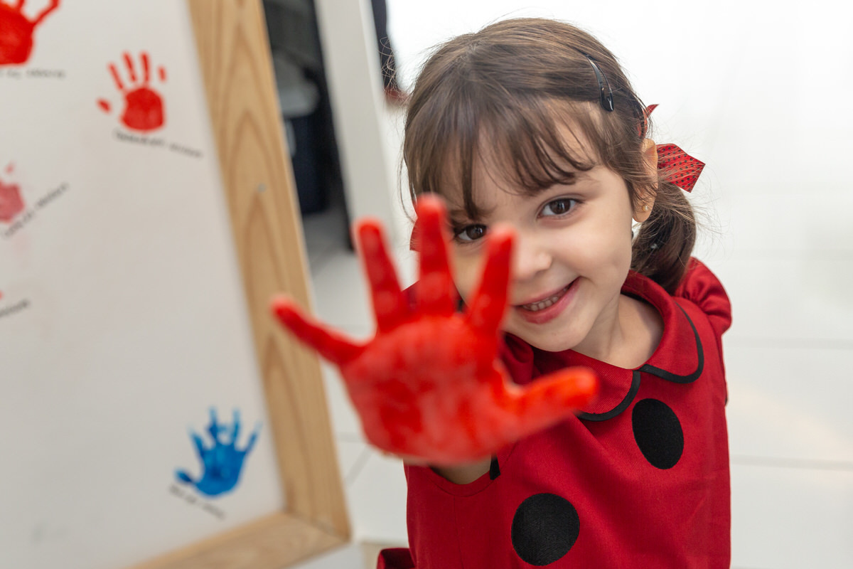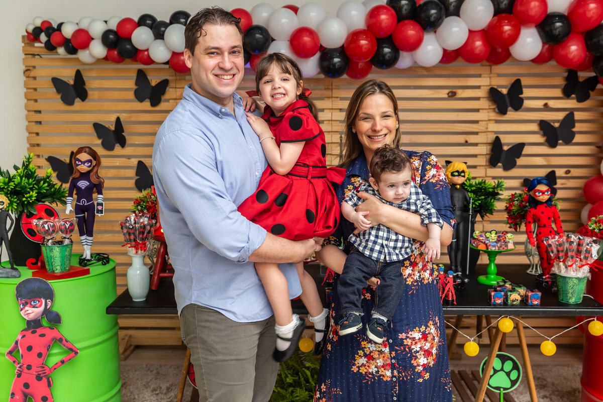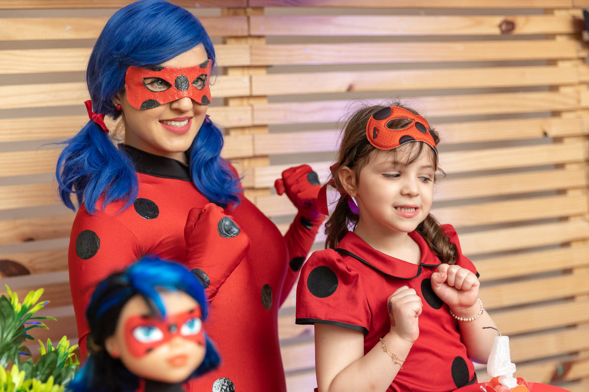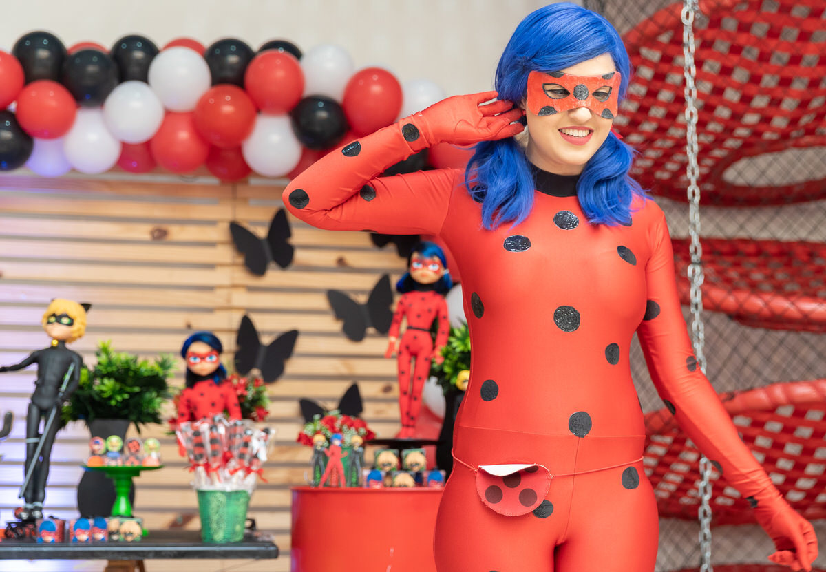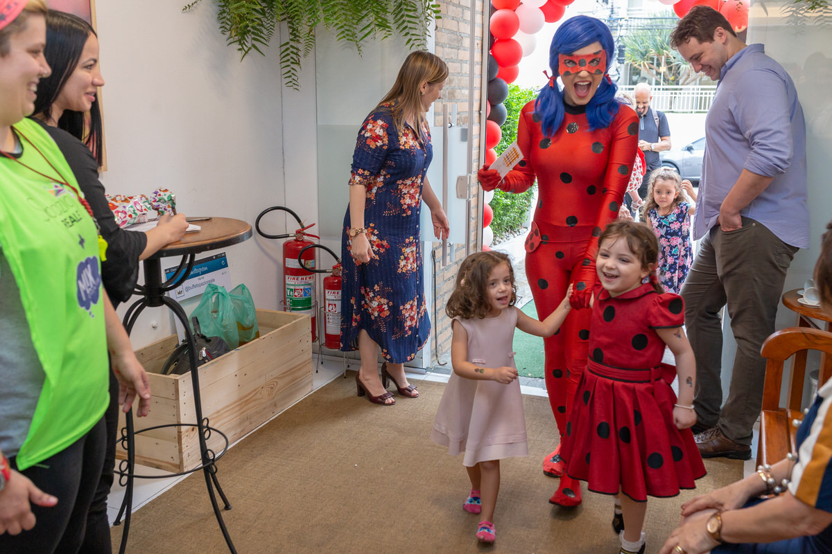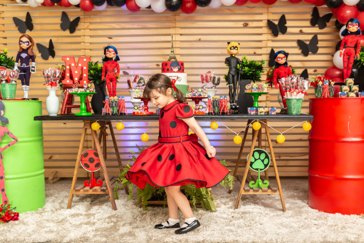 E os pais para surpreende-la ainda mais, convidaram a própria Lady Bug para abrilhantar a festa e surpreender a aniversáriante.